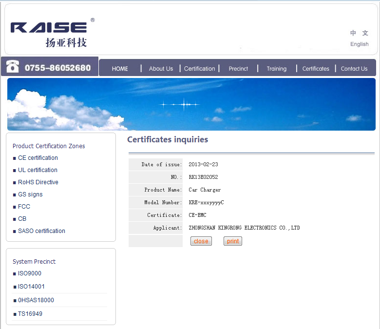 Por favor introduce el Certificado no. RK13E02052 en forma de verificar.